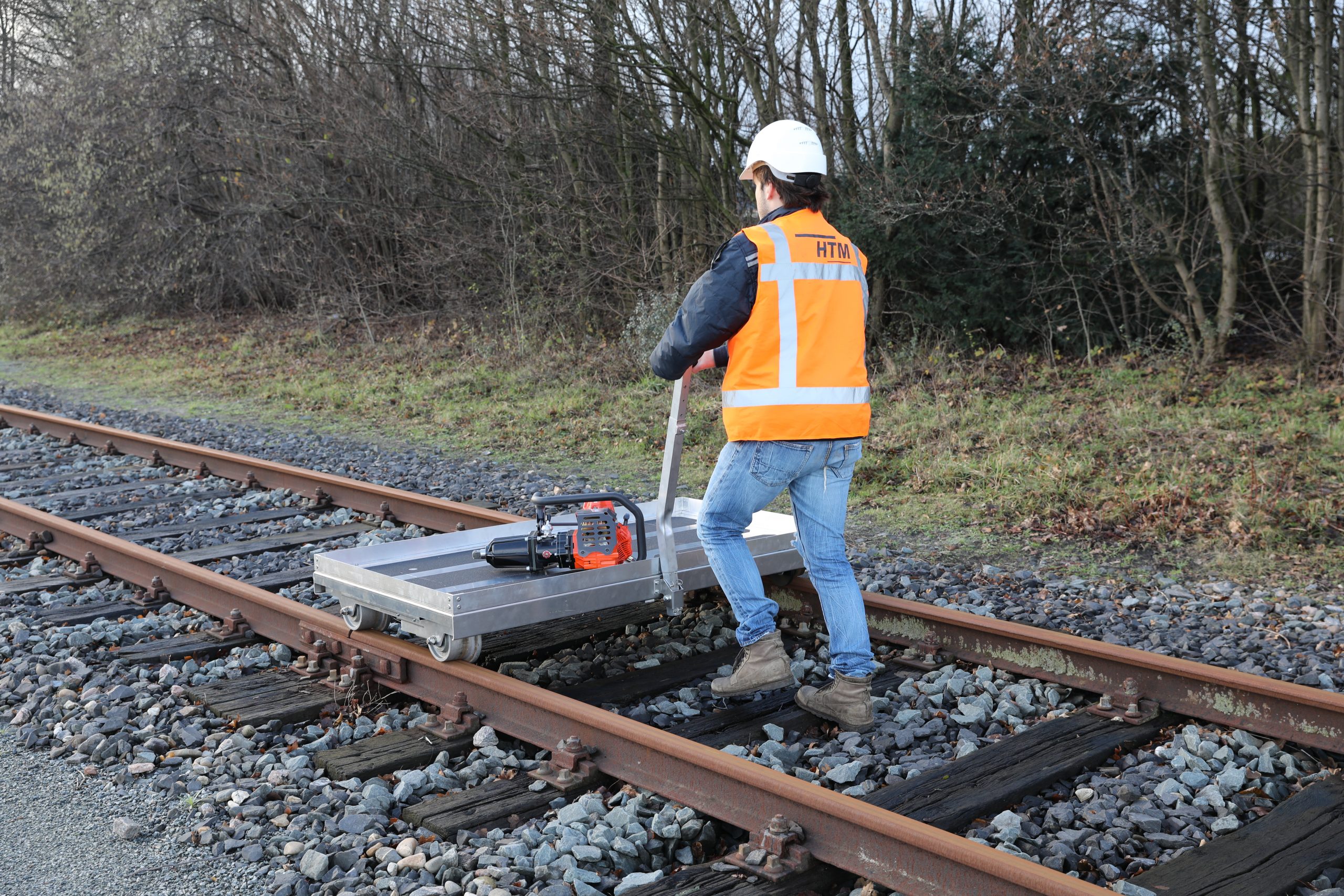 De lorrie weegt  minder dan 50 kg en daarom door 2 man éénvoudig uit het spoor te tillen.